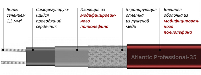 Кабель нагревательный саморегулирующийся Atlantic Professional-35