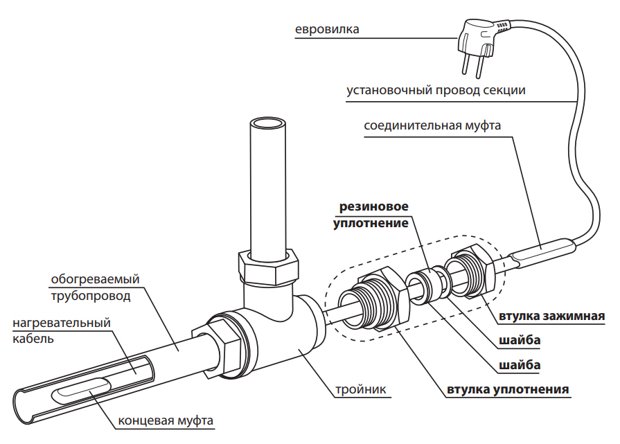 Предназначен для монтажа нагревательного кабеля внутрь трубопровода. Изделие поставляется на 2 типа резьбы – 1’’ и 3/4’’.