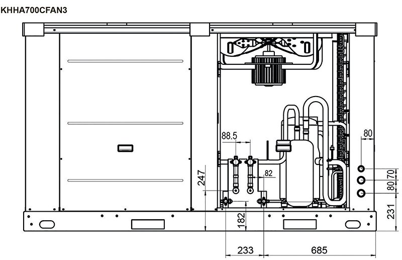 ККБ работает совместно с приточной вентиляционной установкой в качестве охладителя поступающего воздуха в системах вентиляции помещений. Также он совместим с различными видами внутренних блоков и с центральными кондиционерами. Оснащен встроенным блоком автоматики, который управляет работой компрессора и вентилятора, контролирует состояние защитных устройств, предотвращает частый запуск и выключение компрессора.