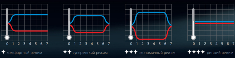 - SMART Sleep — 4 программируемых ночных режима работы — максимально точно помогут подобрать алгоритм работы под каждого пользователя.