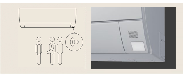 - Eco Sensor — датчик присутствия, распознает присутствие человека в помещении и интенсивность его передвижения. На основе анализа определяет интенсивность работы сплит-системы и необходимость перехода в энергосберегающий режим.