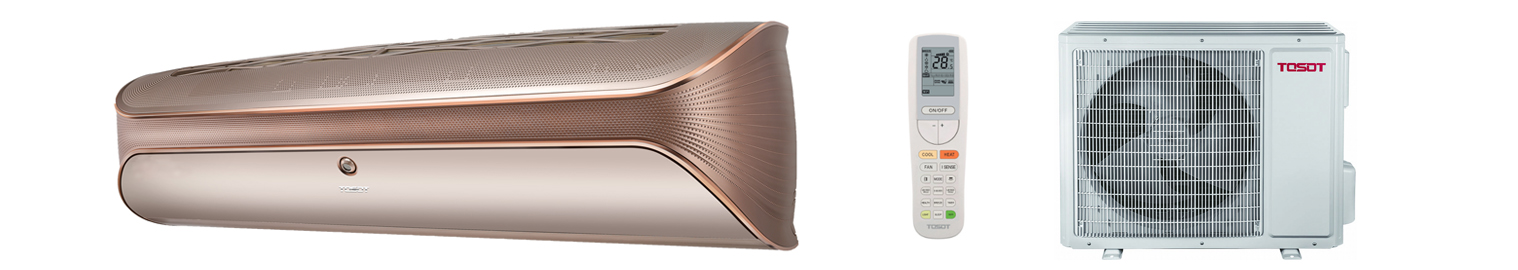Инверторная сплит-система Tosot T09H-STR/I-G/T09H-STR/O флагманской серии-комфорт TRIANGLE 2020 года с ультрасовременным ярким дизайном представлена в золотистом оттенке. Модель рассчитана на работу в помещении площадью до 25 кв.м.