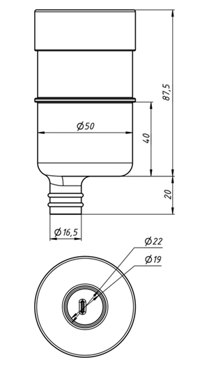 Сифон оснащен механическим запирающим устройством, не пропускающим запах из канализации при высыхании воды в гидрозатворе. Высота гидрозатвора 40 мм. В конструкции предусмотрен выпускной патрубок DN 16 и длинной 20 мм.