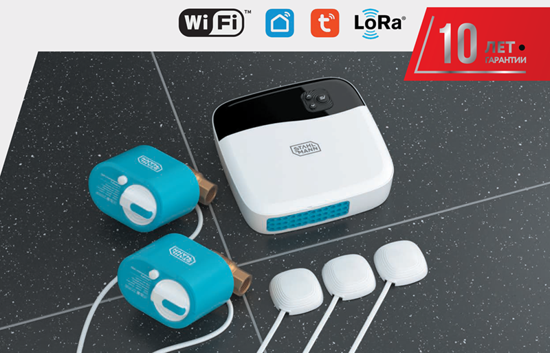 Stahlmann SMART — это универсальная система защиты от протечек нового поколения с расширенными возможностями управления и мониторинга. Она объединяет проверенную надежность проводных датчиков, гибкость беспроводных технологий и интеллектуальные алгоритмы работы, позволяя контролировать две независимые зоны протечки, управлять внешним оборудованием и получать уведомления на смартфон.