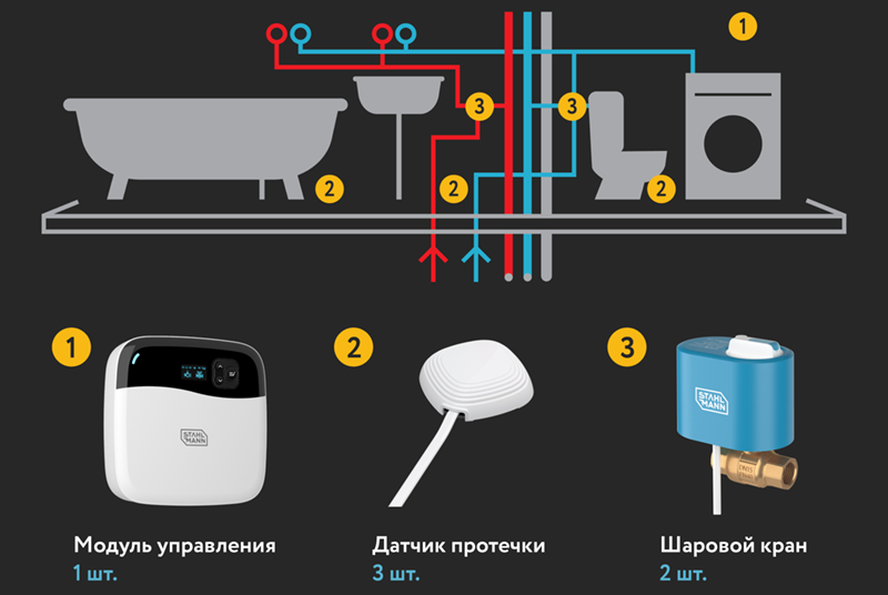 Пример схемы размещения системы защиты от протечек: