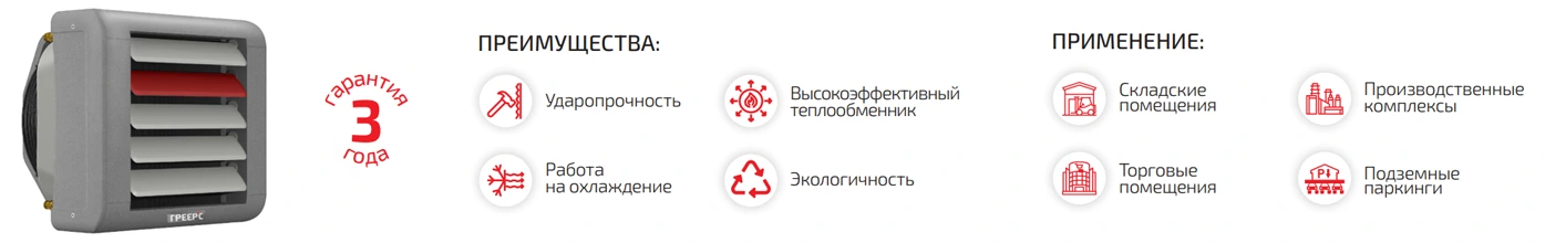 Водяной тепловентилятор ГРЕЕРС серии BC представлен в высокопрочном корпусе из вспененного полипропилена, обеспечивает минимальные шумовые показатели. Предназначен для отопления общественных, торговых и промышленных объектов: производственно-складских комплексов, спортивных объектов, тепличных и сельскохозяйственных комплексов, автомоек и автомастерских.