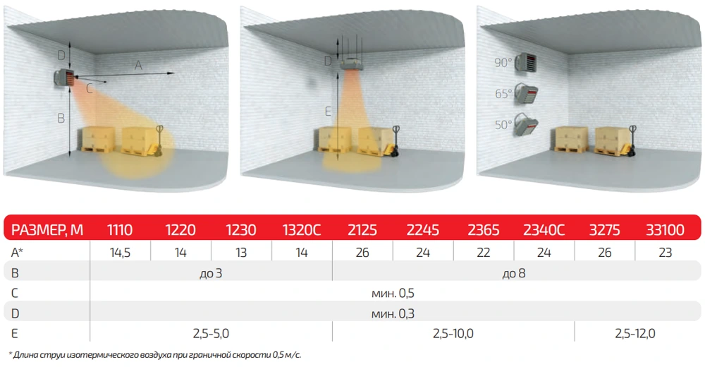 2. При установке тепловентиляторов в углах струю воздуха нужно направить в центр помещения.