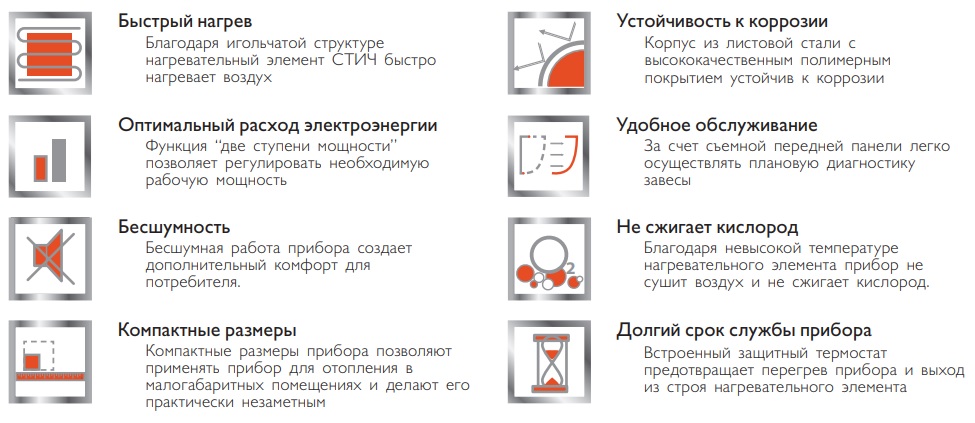 - 3 режима работы (Возможность использования в режиме вентилятора без нагрева в летний период)
