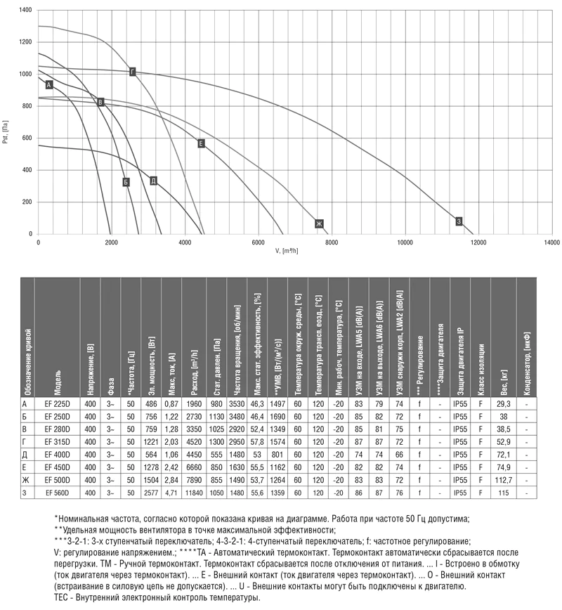 - 120°С — максимальная температура перемещаемого воздуха.