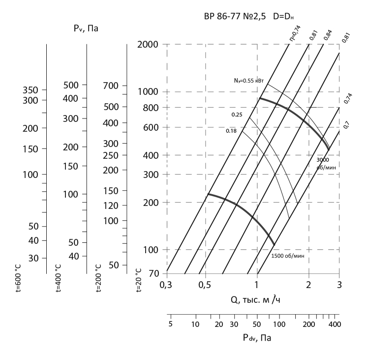 Радиальный вентилятор низкого давления ВР 86-77 / №2,5 / 0,55 кВт / 3000 об./мин. / Прав / 0°